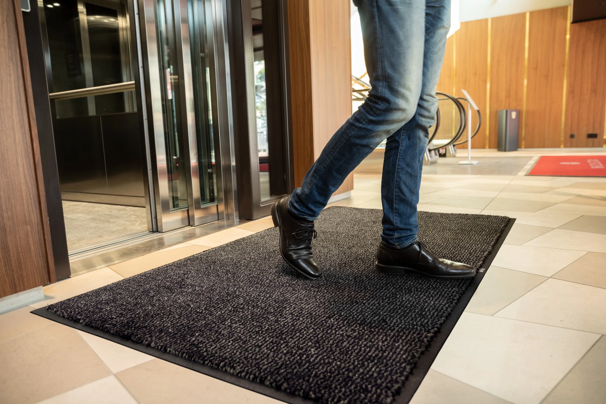 En ljuddämpande matta som stoppar torr smuts. Kan även kombineras med skrapmatta.