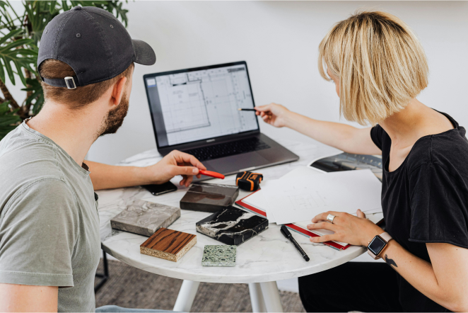Kort därefter visar vi upp ett första förslag som inkluderar moodboard, planritning och prisuppskattning. Vi säkerställer att vi tolkat er rätt - både visuellt och planeringsmässigt. Vi diskuterar budget och som sagt, det är ni som bestämmer vad det ska kosta.