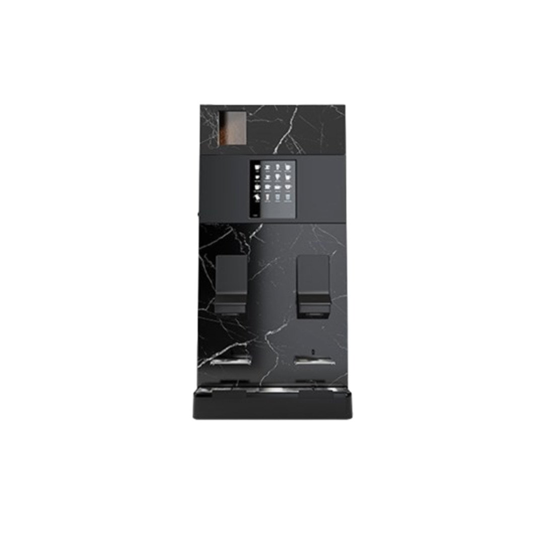 Öppna dörren så ser du en orange knapp som lyser på insidan. Slå av maskinen med denna knapp och vänta i 10 sekunder. Sedan slå på den genom att trycka på knappen igen. Maskinen behöver någon minut på sig att starta och skall sedan servera kaffe igen.