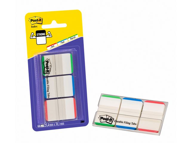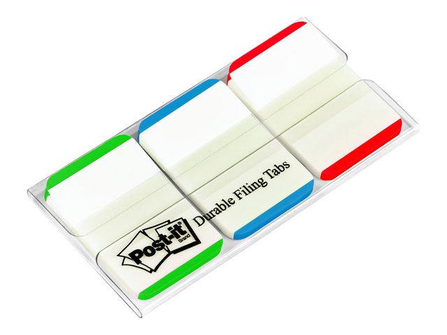 Dessa iögonfallande Post-it® Index Strong arkiveringsflikar är gjorda för att du ska kunna skriva på dem och flytta dem, är tillverkade av hållbar plast och fäster säkert på dokument. Små Post-it® Strong registerflikar är lämpliga för en mängd olika användningsområden, från arkivering av viktiga dokument till sortering av pärmar i organiserade avsnitt och mycket mer. Om du behöver markera ställen på ett tydligt sätt för senare hantering eller separera dina mappar, kommer dessa hållbara, små flikar definitivt att fånga din uppmärksamhet och den transparenta delen täcker inte över texten. Den här praktiska förpackningen levereras i ett urval av klara färger och det finns tillräckligt med plats för att skriva en liten rubrik. Post-it® arkiveringsflikar kan placeras i en anteckningsbok, rapport eller tidskrift. De är ett perfekt hjälpmedel för att färgkoda viktiga dokument för senare referenshantering och levereras i en praktisk kapsel av plast.