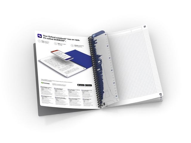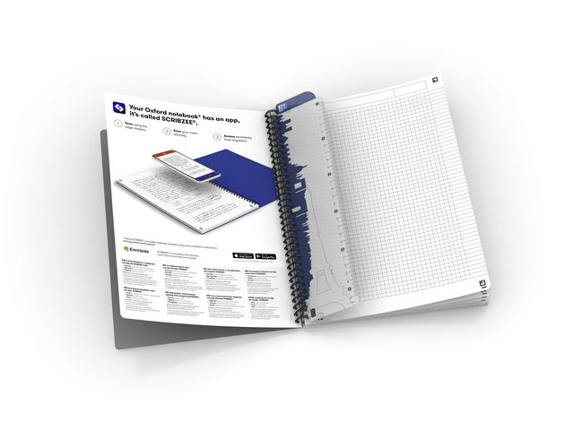 Oxford Office Urban Mix-anteckningsblock är lätta och har ett vattentätt nästan outslitligt omslag som tål extremt slitage. Den spiralbundna anteckningsboken har ett slitstark polypropylenomslag med dubbel tjocklek som håller ordning på och skyddar dina anteckningar. Den har en svart plastbelagd spiralbindning för en snygg finish och professionell presentation. De rutiga sidorna kan användas för grafisk design, matematiska uträkningar eller bara för att anteckna. Dessutom levereras alla Oxford Urban Mix-anteckningsblock komplett med Optik Paper®, som är trevliga att skriva på och har minimal transparens. Pappret är även miljövänligt. I det här Oxford®-sortimentet ingår ScribzeeT: en användbar anteckningsapp som förändrar ditt sätt att sortera och förvara dina anteckningar. ScribzeeT kan hämtas kostnadsfritt från App Store eller Google Play och gör att du kan använda din telefons kamera till att skanna, märka och spara dina anteckningar på ett säkert sätt. Den molnbaserade appen är krypterad för extra säkerhet och hjälper dig att enkelt sortera anteckningar i mappar och eller efter händelser, samt dela dem med andra. Appen är också inbyggd i produktivitetsappen Evernote, så att du kan hitta dina skannade objekt direkt i kalendern.