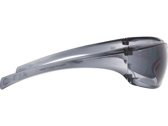 Lätta skyddsglasögon med välformad, rundad lins som täcker ögonen maximalt. Skyddsglasögon med lins i polykarbonat som skyddar mot repor. Lins med utmärkt periferiseende och bra skydd från sidorna (optisk klass 1). Tunna skalmar