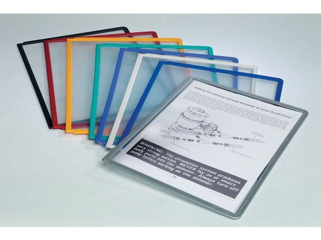 Praktisk panel SHERPA® A4 av polypropylen för översiktssystem. Denna ficka/panel är den som ingår de kompletta seten i Sherpaserien och Varioserien. Färgad ram och öppen upptill för att enkelt att sätta i och ta ur dokument. Passar till alla Durable panelsystem eftersom piggarna sitter fast i hållarna och dessa paneler inte har några piggar. Vid insättning och borttagning av fickorna är det bra att böja fickan lite försiktigt i mitten längs med inre långsidan så går det lätt att sätta dit och ta bort fickan utan att piggarna i hållaren skadas.