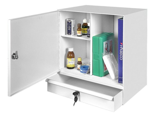 Svensktillverkat medicinskåp i rostskyddad stålplåt i hög kvalité. Medicinskåpet är extremt tåligt och mycket stabilt. Hållbar yta som är lätt att rengöra. Vit, tålig, porfri pulverlack. En flyttbar plåthylla. Höger eller vänst... Läs mer