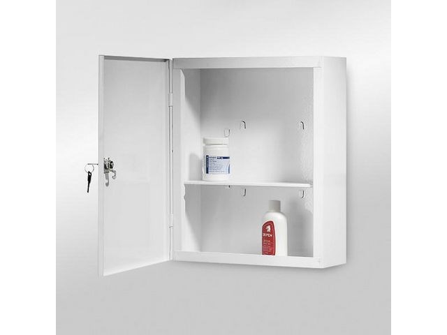 Svensktillverkat medicinskåp i rostskyddad stålplåt i hög kvalité. Medicinskåpet är extremt tåligt och mycket stabilt. Hållbar yta som är lätt att rengöra. Vit, tålig, porfri pulverlack. En flyttbar plåthylla. Höger eller vänsterhängning genom att hela skåpet kan vändas. Skåpet kräver endast två uppsättningsskruvar. Finns även i storlek 40x50cm. Kan tas hem på beställning kontakta kundtjänst.