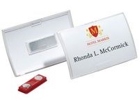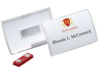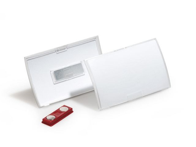 Vikbara namnbrickor från DURABLE kommer väl till pass för kontor och kundorienterade företag eftersom de hjälper dig att uppvisa identitet vid behov. De vikbara namnbrickorna från DURABLE är en lämplig lösning för att bibehålla eller hålla ID-kort för kontorspersonal, besökare eller den som behöver ett ID-kort. Det genomskinliga materialet visar all information på ID-kortet tydligt, oavsett om det är texter och bilder. Dessutom har de ett flexibelt gångjärn och en magnet som gör det möjligt att snabbt och enkelt byta ID-kortet inuti.