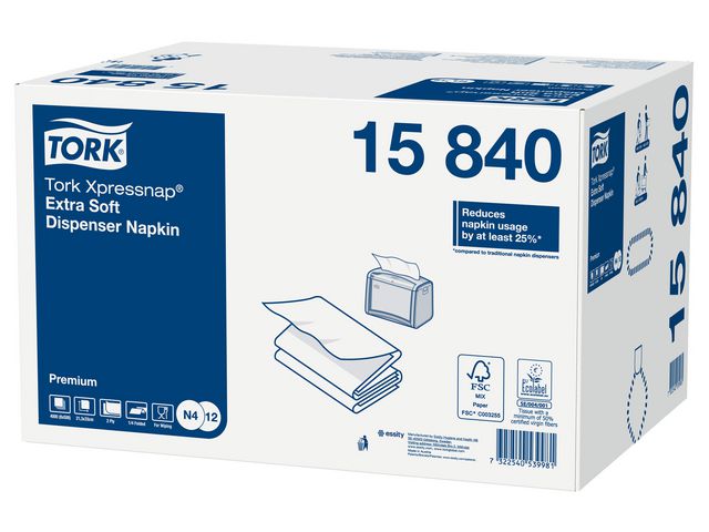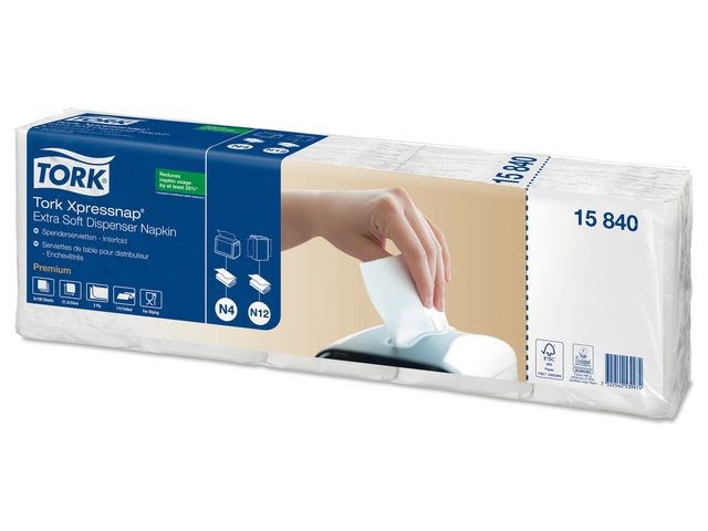 Xpressnap ultramjuka dispenserservetter är en högkvalitativ produkt som passar på alla typer av bord. Hektiska miljöer med självservice behöver servetter av hög kvalitet som inte skapar onödigt avfall eller kostnader. Tork Xpressnap Extra Mjuk Vit Dispenserservett har högklassig mjukhet och tjocklek som gör ett gott intryck på gästerna. Förbättrad renlighet med hjälp av utmatningen av ett ark i taget som garanterar att användare bara rör det de tar. Servetten passar till exempel på kaféer, i snabbmatsrestauranger och i närbutiker. Används smidigt tillsammans med hela serien av Tork Xpressnap dispensrar.