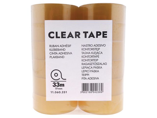 Klar tejp av PP-film. Gulnar inte. Kärndiameter: 25 mm