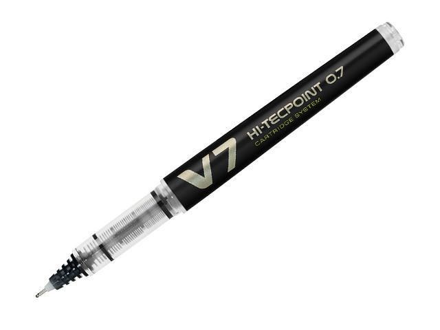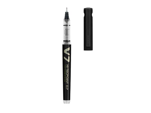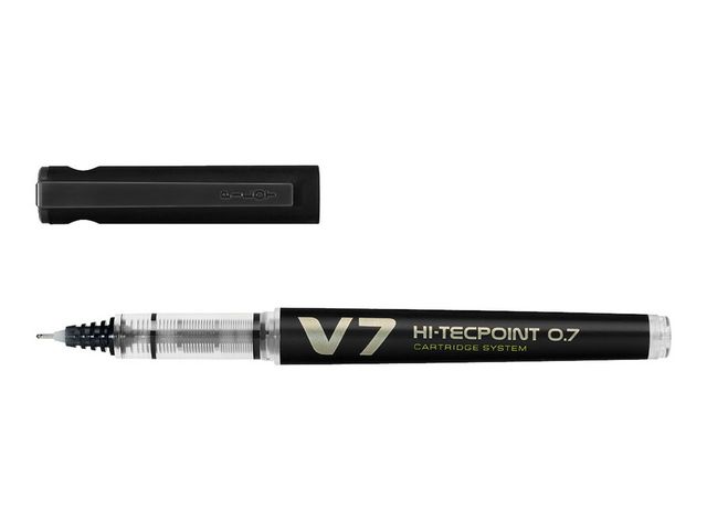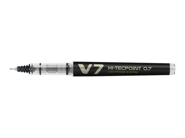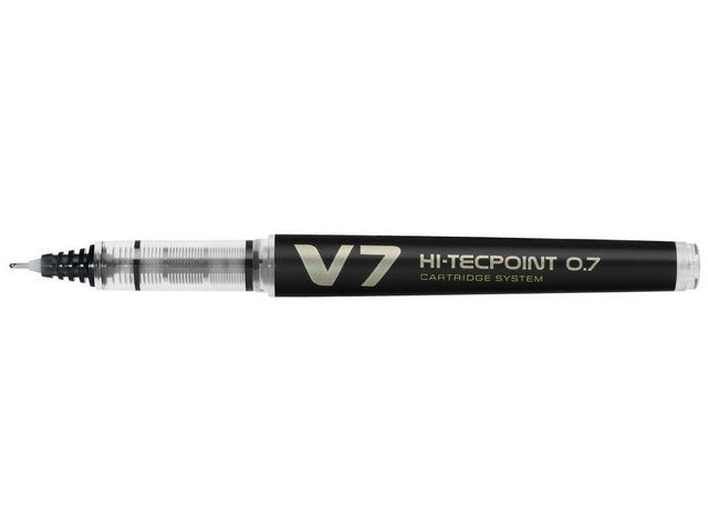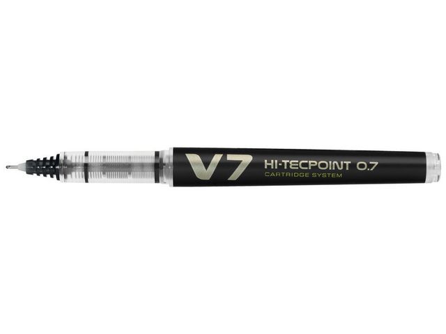 Pilot Begreen Hi-Tecpoint V7 är en tunn rollerballpenna med en bläckregulator som ger ett jämnt bläckflöde. Pilot Begreen Hi-Tecpoint V7 har en nålformad spets i rostfritt stål som ger mjuka penndrag utan ansträngning. Pennan har en tunn spets på 0,7 mm, vilket är perfekt för uppgifter som kräver stor noggrannhet. Dess hållbara kula i hårdmetall, med skåror för extra stöd och stadig vridning, behåller sin form länge. Denna rollerballpenna med flytande bläck har en unik V-systemmekanism som reglerar bläckflödet och ser till att det är jämnt och fast, samt ett litet fönster som visar bläcknivån. Pennan finns i en mängd olika färger och levereras komplett med en kork som skyddar pennan och en fickklämma som gör den praktisk att använda.