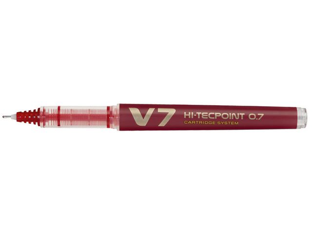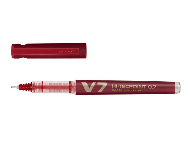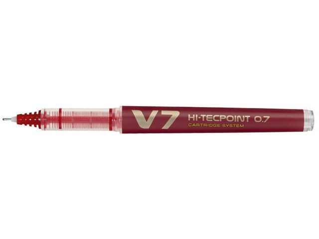 Pilot Begreen Hi-Tecpoint V7 är en tunn rollerballpenna med en bläckregulator som ger ett jämnt bläckflöde. Pilot Begreen Hi-Tecpoint V7 har en nålformad spets i rostfritt stål som ger mjuka penndrag utan ansträngning. Pennan har en tunn spets på 0,7 mm, vilket är perfekt för uppgifter som kräver stor noggrannhet. Dess hållbara kula i hårdmetall, med skåror för extra stöd och stadig vridning, behåller sin form länge. Denna rollerballpenna med flytande bläck har en unik V-systemmekanism som reglerar bläckflödet och ser till att det är jämnt och fast, samt ett litet fönster som visar bläcknivån. Pennan finns i en mängd olika färger och levereras komplett med kork som skyddar pennan och en fickklämma som gör den praktisk att använda.