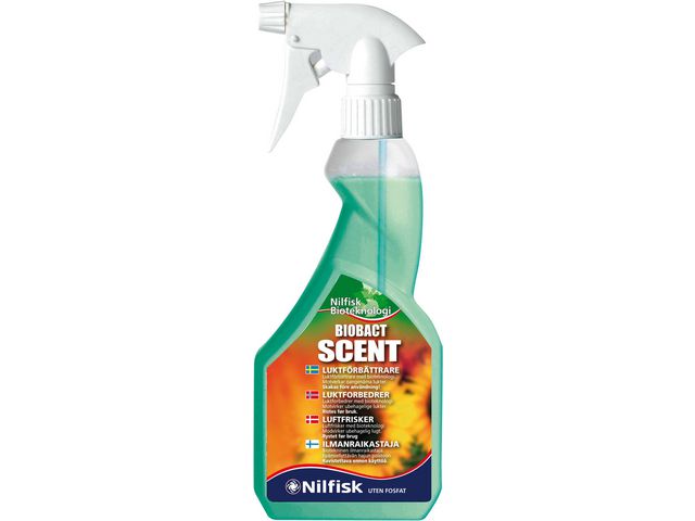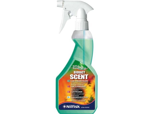 BioBact Scent Spray är en unik och kraftfull produkt för att ta bort obehagliga lukter och samtidigt ge en härlig och fräsch doft till din miljö. Biobact Scent bryter effektivt ner de organiska substanser som är grundorsaken till en illaluktande miljö. Sprayen lämnar inte bara ytan fri från obehagliga lukter utan ger också en härlig och fräsch doft. BioBact Scent Spray med doft inspirerad av naturen. Biobact tre olika funktioner på en och samma gång: problemlösare (rengör och eliminerar lukter), problemförebyggare (minimerar framtida luktgener) och bakteriekontroll (förebyggande mot farliga bakterier). Substanser som urin och matrester omvandlas till enbart vatten och koldioxid, samtidigt som dålig lukt ersätts av en fräsch doft i det aktuella utrymmet. Oskadlig för människor och djur. Biologiskt nedbrytbar och icke brännbar. BioBact Scent Spray kan användas på alla vattentåliga ytor där obehagliga lukter finns, såsom i badrummet, i köket, på mattor, möbler eller i bilen. Det tar bort lukter från husdjur, matos, svett, urin och mycket mer.