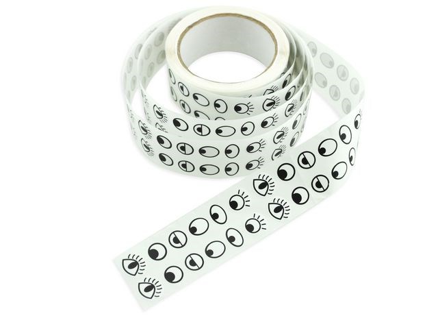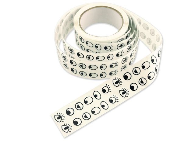 Stickers med motiv av ögon i olika varianter, på rulle. Klistermärkena är lätta att fästa på teckningar eller använda till papperspyssel och ger ett roligt och levande resultat.