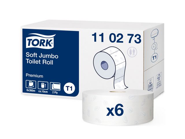 Tork Mjuk jumborulle T1 med toalettpapper ger skonsam vård för maximal komfort. Tork Jumbo Mjukt toalettpapper T1 är tillverkad av återvunnet material för att minska sopbergen. Det vackert lövpräglade papperet har en mjuk känsl... Läs mer