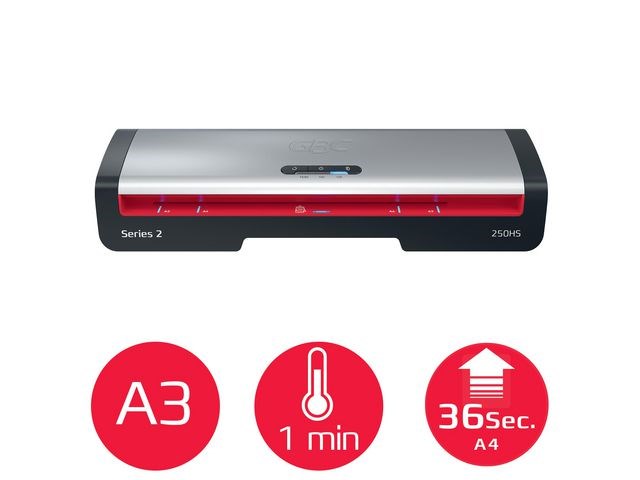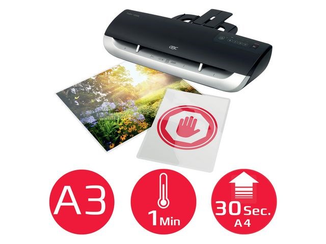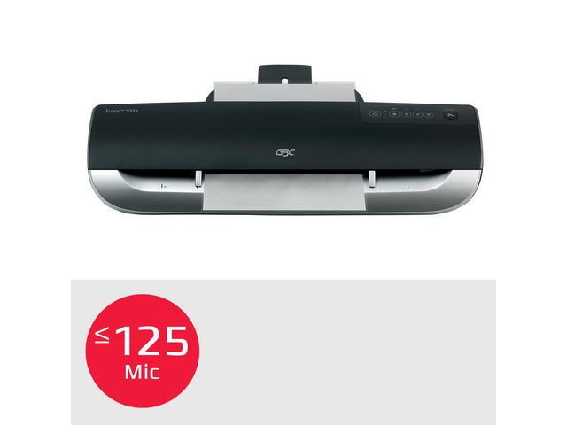 GBC® Fusion 3000L A3-laminator laminerar enskilda dokument på 30 sekunder och använder fickor i en mängd olika mikronstorlekar. GBC® Fusion 3000L A3-laminator är idealisk för frekvent användning, garanterar utmärkta resultat med ett enkelt gränssnitt och har en kompakt och modern design. Den förstklassiga LCD-skärmen är redo att användas på 90 sekunder, visar manuella inställningar och har en automatisk varnings- och backfunktion som snabbt korrigerar felinmatade papper. På bara 30 sekunders lamineringstid kan du bevara vad som helst med fickor på 2 x 75, 2 x 100, 2 x 125 mikroner, från ID-kort och foton till certifikat eller instruktionskort som hanteras ofta. Utmatningsfacket garanterar en platt finish och den justerbara fickguiden gör att du kan använda lamineringsfickor av olika storlekar. Fusion 3000L får enkelt plats på skrivbordet eller i hyllan, vilket gör den perfekt för hemmet eller mindre kontor.
