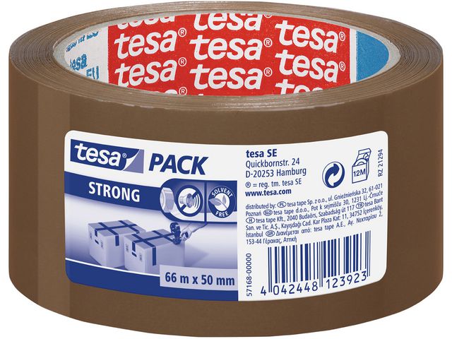 Packtejp tesa Strong ger tyst avrullning och stark vidhäftning för säker paketering. Packtejp i PP kavlité med lösningsfritt häftämne. Med jämn och tyst avrullning. Passar i alla tesa handhållare. Tillverkad av UV-resistent plast.