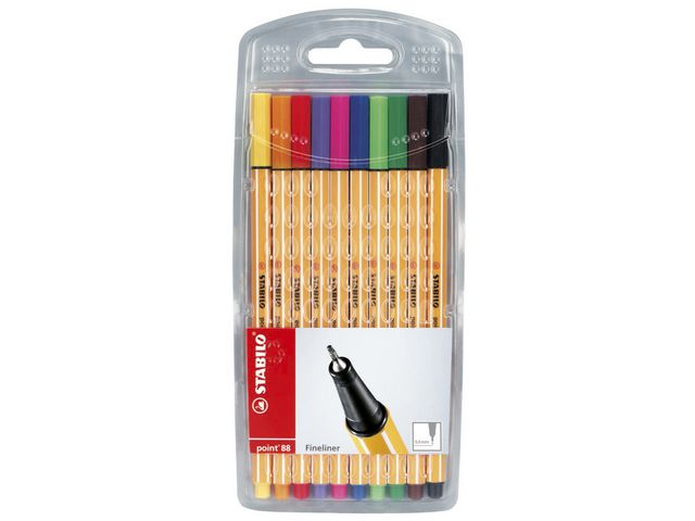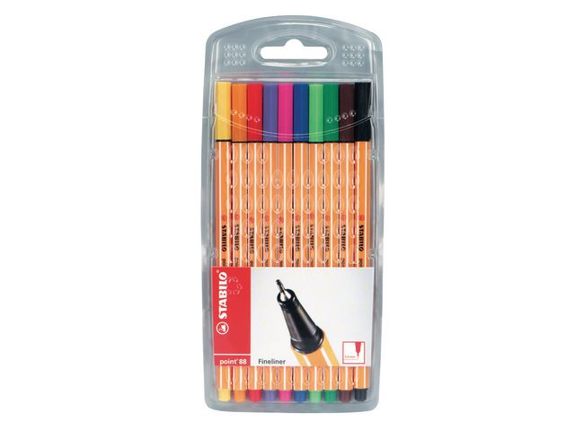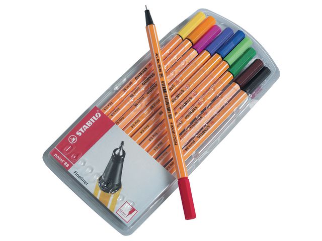 Välkända STABILO® point 88® är idealisk för att skriva, rita och skissa. Den har ett levande vattenbaserat bläck och klarar sig länge utan kork utan att torka. Denna STABILO® point 88® penna med tunn spets är utformad för lång hållbarhet och passar utmärkt för skol- och proffsbruk eftersom den metallförstärkta spetsen möjliggör detaljerat arbete som att rita diagram eller skisser och tekniska ritningar. Pennans tunna metallspets passar utmärkt för användning med mallar och linjaler. Pennan har en linjebredd på 0,4 mm, en sexkantig randig design och en ventilerad säkerhetskork. Pennan har dessutom ett luktfritt vattenbaserat bläck så att den kan ligga utan kork i upp till 24 timmar utan att torka. Finns i blandade klara färger. De lysande pigmenterade linjerna gör förpackningen med 10 färgglada pennor till ett populärt val för både konstnärer och barn.