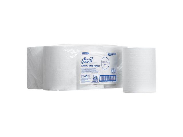 Främja en mycket god handhygien och minska mängden avfall med denna bekväma och snabbtorkande Scott® Slimroll-handduksrulle från Kimberly-Clark Professional*. Dessa starka handdukar av hög kvalitet är lämpliga för daglig användning och eftersom de är tillverkade av 60 % återvunnet material är de det miljömässigt bästa alternativet. Patenterad Airflex*-teknik garanterar en extremt hög absorptionsförmåga och ger ett perfekt torrt resultat utan att gå sönder eller gegga ihop sig när de blir våta, till skillnad från vanliga handdukar. De ekonomiska handdukarna med hög kapacitet passar i dispensrar och är perfekta för användning hemma eller i badrum på hotell eller kontor där bänkutrymmet är begränsat.