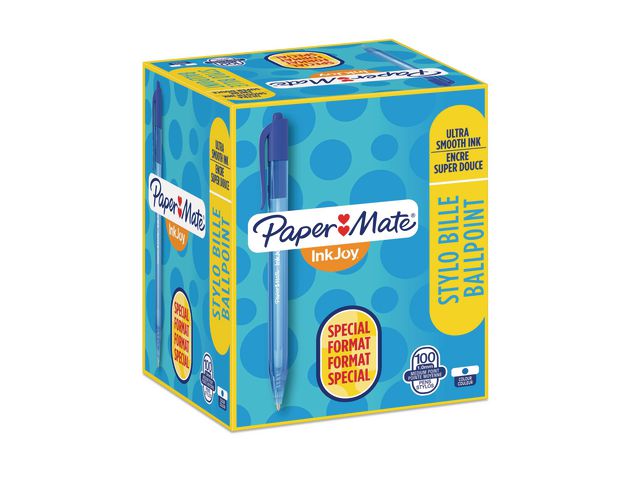 Den triangulära designen på denna Paper Mate® InkJoyT 100-kulspetspenna ger en bekväm och kontrollerad skrivupplevelse. Den här kulspetspennan har en design som framhäver både form och funktion. Medan den genomskinliga pennkroppen och vita påfyllning ger pennan ett slimmat, modernt och snyggt utseende ger dess triangulära form dig en bekväm och kontrollerad skrivupplevelse. Spetsen på 1,0 mm tillsammans med det revolutionerande InkJoyT-skrivsystemet ger mjuka linjer för skarp och tydlig skrift. Dessutom kan du förvara Paper Mate®-pennan nära till hands tack vare den praktiska fickklämman som du kan fästa på fickor, mappar, anteckningsböcker och mycket mer.
