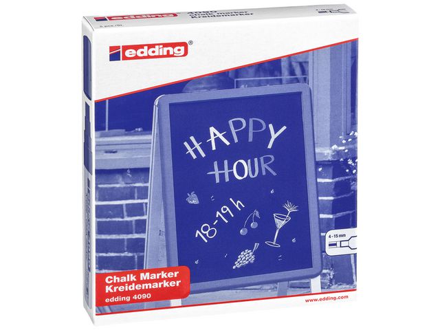 Griffeltavelpennan Edding 4095 har en vattenbaserad, flytande krita och kan användas på glas, fönster, mörka tavlor och speglar. Den här griffeltavelpennan innehåller icke-permanent bläck som enkelt kan torkas bort med en fuktig trasa. Pennan kan användas på nästan alla icke-porösa ytor, till exempel glas, mörka tavlor och speglar. Griffeltavelpennan Edding 4095 har en spets med 2-3 mm linjebredd och är lämplig för mer exakt och noggrann skrift. Den vattenbaserade, flytande kritan är luktfri, vilket ger en mer behaglig användning. Den har ett ventilstyrt bläckflöde för jämn skrift. Märkpennan är tunn och lätt, vilket gör den extremt bekväm och enkel att använda.