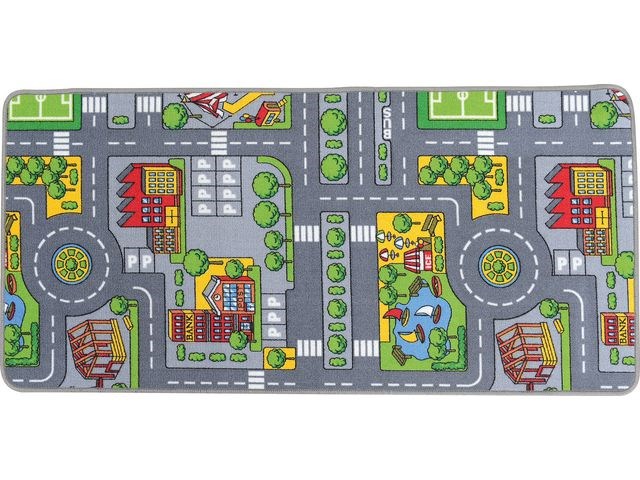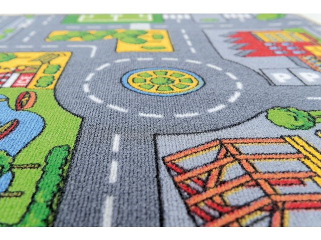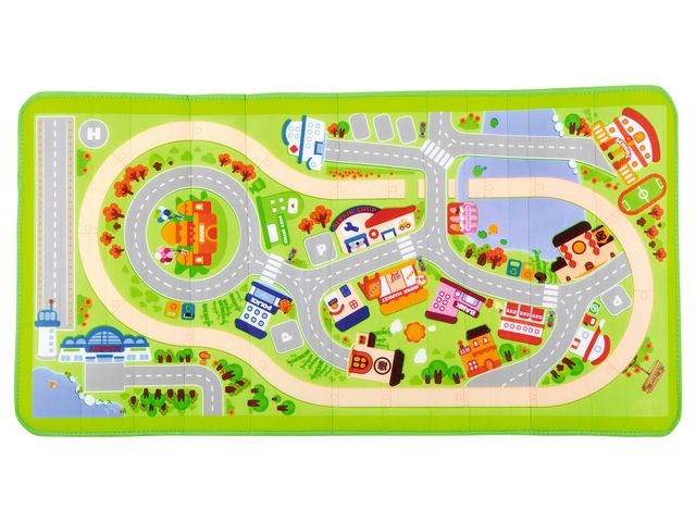 Lekmatta med en stad och flygplats anpassad till lekbordet. 5 mm tjock. Mått: B140 x L70 cm. Översta lagret