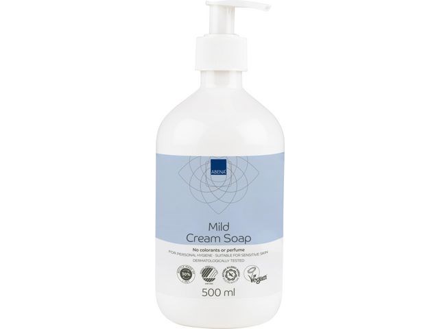 Miljömärkt mild cremetvål utan färgämnen och parfym. Placera denna Abena mild handtvål bredvid handfatet för en skonsam rengöring som inte torkar ut huden. Den milda tvålen innehåller inte parfym och färgämnen, rengör effektivt... Läs mer