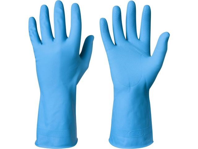 Slitstarka lite längre latexhandskar lämpliga för arbete inom livsmedelsindustri, laboratorier, städning, underhåll och montering i våta miljöer. Slitstarka, lite längre handskar som ger ett bra skydd för händerna och handlederna. Med ett räfflat mönster på handflatan och fingrarna vilket gör dem idealiska för användning i torra eller våta förhållanden. Med flossad insida.