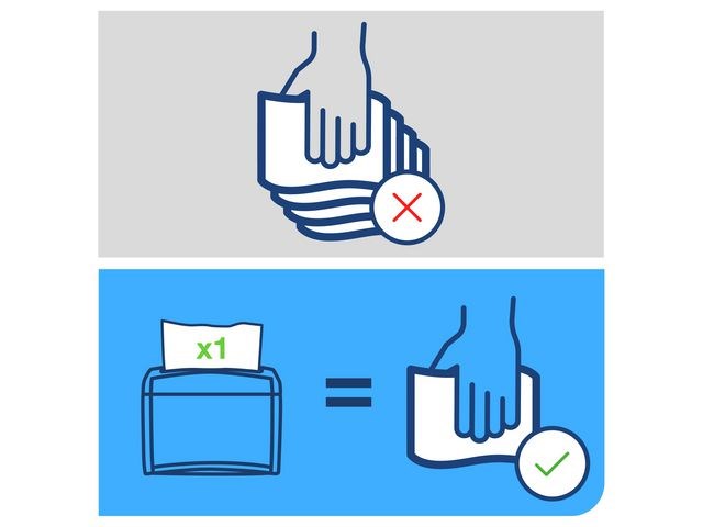 - Höj hygiennivån med ett dispenseringssystem som släpper en servett i taget