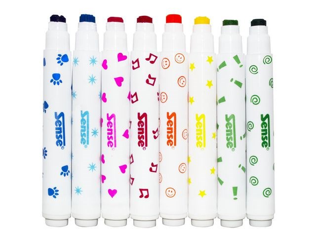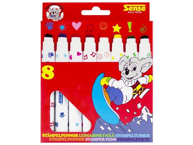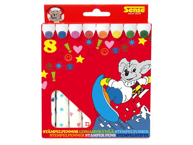 Det här setet med stämpelpennor från Sense® innehåller åtta stämpeldesigner i olika färger som förbättrar alla konstprojekt. Det finns åtta olika stämpelpennor i det här setet från Sense®. Det finns t.ex. en stjärna, spiral, utropstecken och mer. Kan användas för att enkelt utsmycka dina konstprojekt. De passar utmärkt för att skapa levande mönster på kort, papper och andra konstprojekt, och pennorna är ett praktiskt hjälpmedel för både lärare och barn. Den här simpla och roliga stämpelpennan gör det spännande att färglägga.