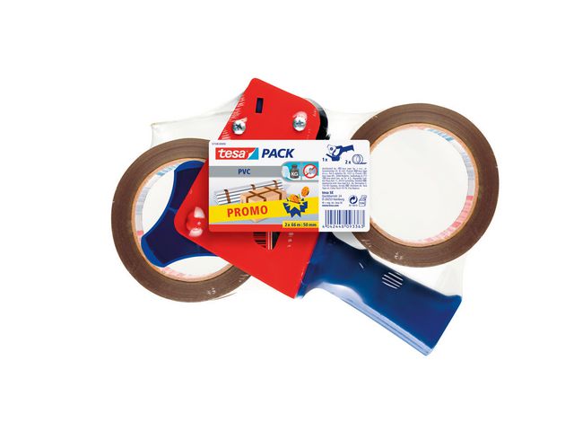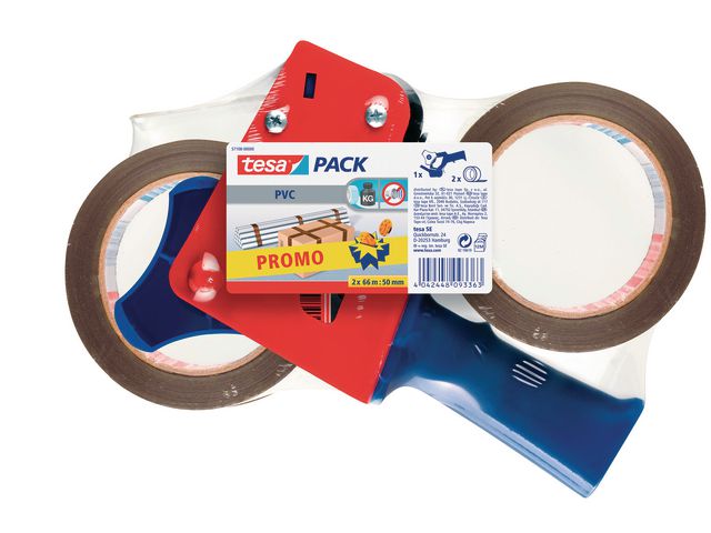 tesa handtejphållare och två Ultra Strong-tejprullar i PVC gör detta Promo Pack till den idealiska lösningen för dina förpackningsbehov. Handhållaren har ett lättanvänt grepp, en fullt justerbar sträckkontroll och en gummirulle för enkel användning med alla vanliga typer av förpackningstejp. Den levereras dessutom med två rullar tespack Ultra Strong förpackningstejp. Dispenserns robusta metallram och vassa kniv kompletteras av en flexibel tejptryckande trasa och ett gjutet plasthandtag. Denna kombination av handhållare och tejprullar är en lättanvänd, hållbar och kostnadseffektiv lösning för allmänna förpackningskrav. Hållaren kan användas med tejprullar med maxbredd på 50mm och en maxlängd på 60m. En förpackning innehåller två rullar Ultra Strong-förpackningstejp i PVC samt en handhållare