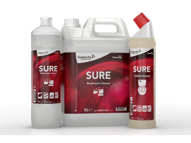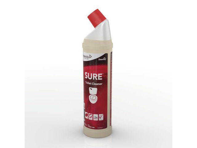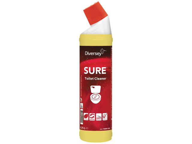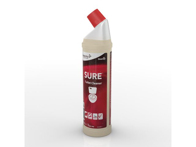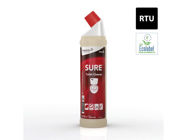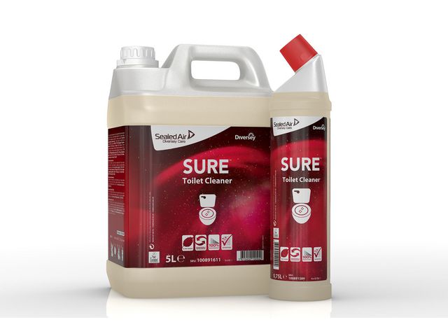 Ett säkert och miljömedvetet toalettrengöringsmedel som håller toaletter och urinoarer fräscha och fria från svåra kalkavlagringar. SURE Toilet Cleaner från Diversey är ett miljömedvetet och väldigt effektivt val. Lösningarna är växtbaserade, 100 % nedbrytbara och använder förnybara energikällor. Det här koncentrerade rengöringsmedlet är så effektivt att det enkelt avlägsnar kalkbeläggningar och -avlagringar och tvålrester. Applicera helt enkelt på toaletter och urinoarer. Låt verka och spola, borsta eller skrubba därefter bort resterna för att få en skinande ren yta. SURE-serien erbjuder professionella rengöringsprodukter som är utformade för att uppfylla kraven på effektivitet och tar även hänsyn till miljön och människors hälsa. Alla produkter är vegetabiliska och tillverkade av förnybara energikällor som är 100 % nedbrytbara och utformade för effektivitet.