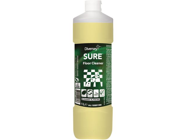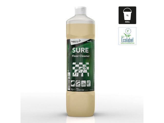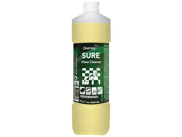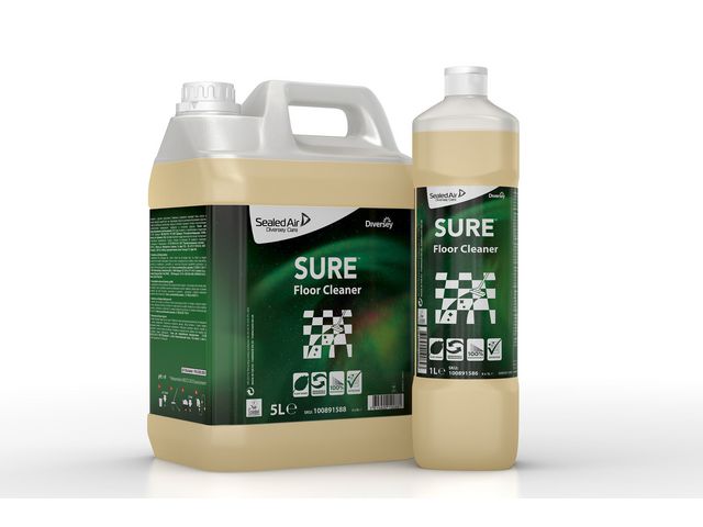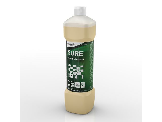 Ett säkert och miljömedvetet rengöringsmedel för daglig användning på alla vattentålig hårda golv. SURE Floor Cleaner från Diversey är ett miljömedvetet och väldigt effektivt val. Lösningarna är växtbaserade, 100 % nedbrytbara och använder förnybara energikällor. Det räcker med en liten dos för att du ska kunna känna dig säker på att dina vattentåliga golv ska bli effektivt rengjorda. Formeln är utformad för att förbereda golv för beläggning, vilket gör det enklare att avlägsna lim och rester för att bättre möjliggöra vidhäftning av ytterligare beläggningar. Den lågskummande formeln verkar snabbt och torkar med en klar och ren finish. Det är det perfekta valet för kombiskurmaskiner, men lämpar sig även för moppmaskiner och golvvårdsmaskiner. SURE-serien erbjuder professionella rengöringsprodukter som är utformade för att uppfylla kraven på effektivitet och tar även hänsyn till miljön och människors hälsa. Alla produkter är vegetabiliska och tillverkade av förnybara energikällor som är 100 % nedbrytbara och utformade för effektivitet.