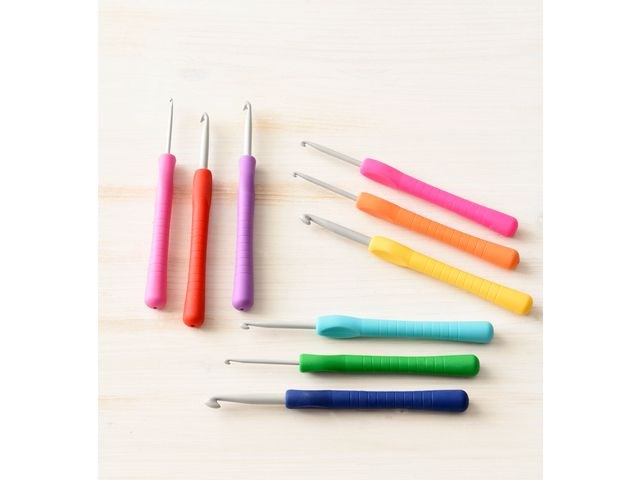Virknål Easygrip 4 mm 14 cm Aluminium grå med kulört greppvänligt handtag som underlättar användandet för både barn och vuxna. - Material: Handtag tillverkat av 100% TPE (termoplastisk elastomer) -
