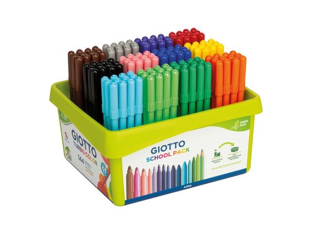 GIOTTO färgpennor har ett tvättbart bläck som tryggt kan användas av barn som är 3 år eller äldre. Tuschpennor som är avtvättbara, perfekt om man råkar måla på sina kläder. Tuschpennorna har en spets på 2,8mm. Spetsen går inte att trycka in i pennan vilket gör att den tål lite hårdare tag. Korken är ventilerad, med säkerhetsplugg vilket gör den kvävningssäker. Pennorna är giftfria med ett vattenbaserat bläck som kan tvättas av från de flesta material i 40°C maskintvätt. Får du bläck på huden kan det tvättas av med tvål och vatten. Med 144 färger till sitt förfogande blir det kul att måla för både barn och vuxna.