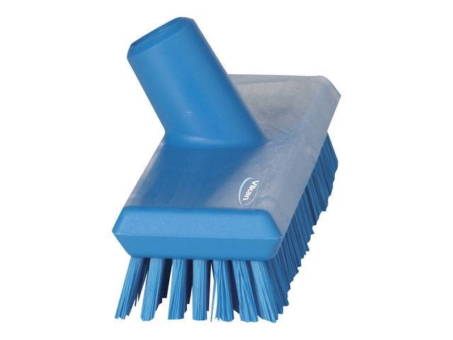Skurborste för hård smuts. Hård skurborste med vattengenomlöp för rengöring av golv i livsmedelindustrin. Lämplig för hårt sittande smuts. - Mått: 9,5x7,5x27cm - Livsmedelsgodkänd -