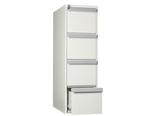 Med detta hängmapsskåp från Håbeco kan du skydda dina viktiga dokument. Det slimmade lättviktskåpet väger endast 185 kg. Hängmappsskåpet är brandcertifierat för papper i 60 minuter. Skåpet är anpassat för A4 och har 4 lådor för hängmappsförvaring. Centrallåsning av alla fyra lådor via ett nyckellås. Två nycklar medföljer.