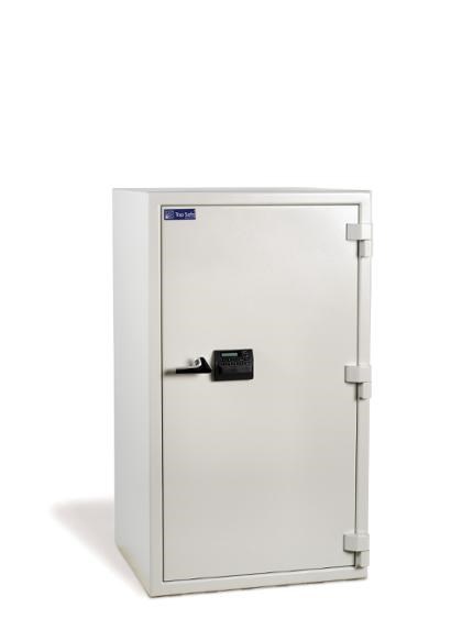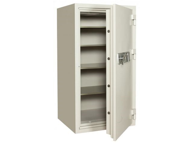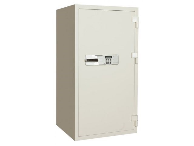 Skydda dina dokument i detta säkra skåp! Brandklassat dokumentskåp som skyddar dina pärmar mot brand i hela 2 timmar. Skåpet är utrustat med kodlås som standard och har 4 stycken hyllor vilka rymmer 27 A4 pärmar. Design och finish utgörs av en slagfast miljövänligare struckturlack, en horisontell frontpanel i en sober mörkblå kulör, samt ett silverfärgat vred. Höjd utvändig: 1315 mm Bredd utvänding: 700 mm Djup utvändig: 635 mm Höjd invändig: 1145 mm Bredd invändig: 530 mm Djup invändig: 460 mm Vikt: 335 kg Volym: 280 liter