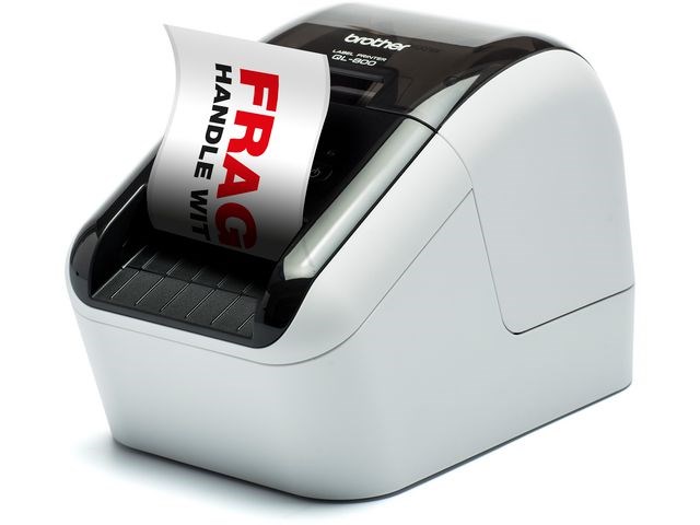 Etikettskrivaren QL-800 är en mycket snabb och mångsidig etikettskrivare som ansluts via USB till PC eller Mac. Med en speciell etikettrulle (DK22251) kan skrivaren skriva ut i både svart och rött vilket gör det möjligt att verkligen belysa viss information på etiketterna. Skrivaren levereras med en kraftfull programvara för Windows och Mac. För användare av Windows finns dessutom en funktion som inte kräver installation, anslut bara USB-kabeln och skriv ut. Inga programvaror eller drivrutiner behöver installeras. Du kan lätt skapa professionella etiketter i hög upplösning för dokument, arkiv, flikregister, mappar, namnskyltar och mycket mer. Den inbyggda automatiska kniven gör att man enkelt kan skriva ut många etiketter i rad. Etiketter finns i en mängd olika bredder och storlekar, antingen som tape i fortlöpande längd som kan klippas till önskad storlek eller som standardiserade formklippta etiketter. Pappersetiketterna har ett ytskikt som förhindrar märken eller repor. Våra hållbara plastfilmsetiketter ä slitagebeständiga och den högglansiga ytan lämpar sig perfekt för tillfällig skyltning.