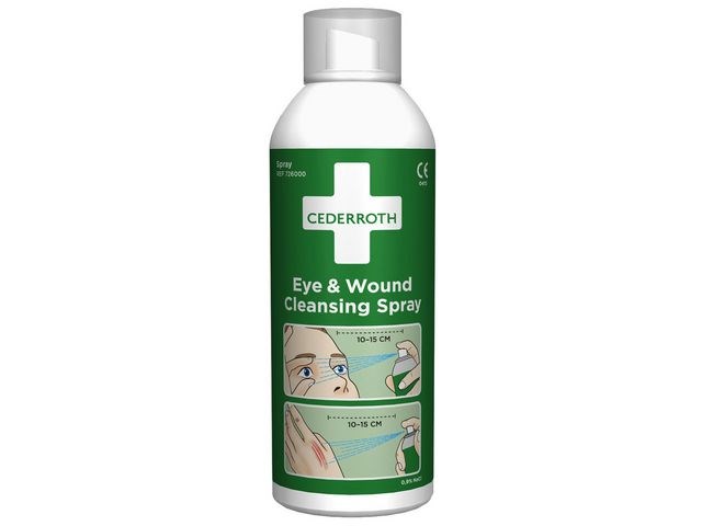 Spray för att rengöra och skölja bort damm och smuts ur ögon och sår. Passar i Första hjälpen-stationen. Sprayen ger ett mjukt vätskeflöde och har en total spoltid på 5 minuter, praktiskt för till exempel skrubbsår som behöver ... Läs mer