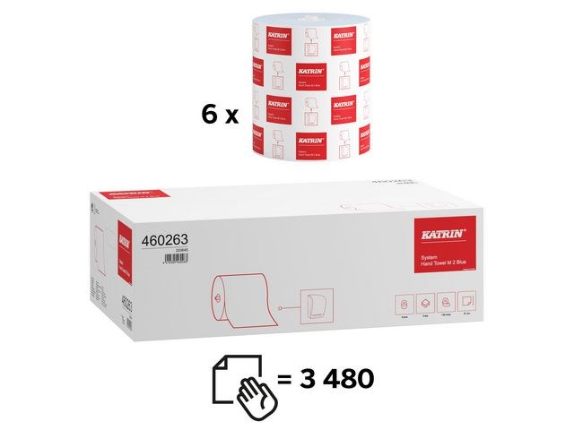 Handtorkpapper med bra egenskaper när det gäller styrka och absorption. Handtorkpapper av bra kvalitet för alla behov, lämplig för miljöer med medelhög till hög förbrukning Fiberråvara: Återvunna fiber och nyfiber. Andelen styrs av produktkraven och tillgång och kvalitet för optimal användning av råvaran. Speciellt lämplig inom livsmedelshantering, där den blå färgen ger spårbarhet. Katrins systemlösning för handtorkning är det bästa valet ur både miljö-, hygien- och kostnadsaspekt. Ett ark i taget matas fram, vilket ger en kontrollerad och hygienisk lösning. Passar till: Katrin System Handduksdispenser.
