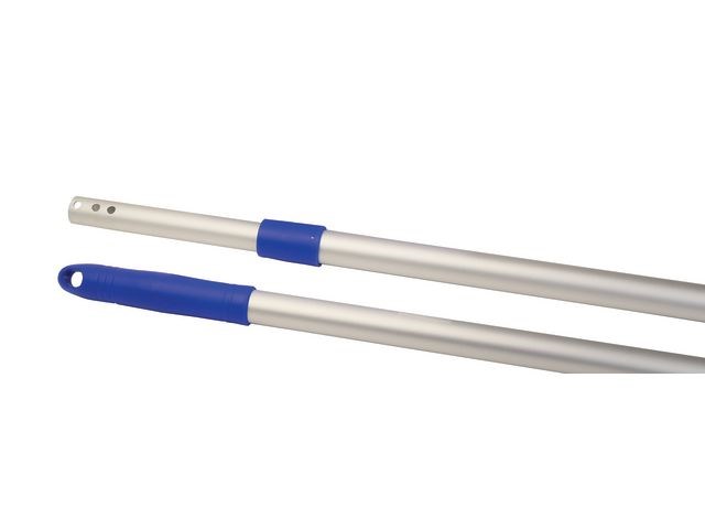 Ställbart redskapsskaft i anodiserad aluminium. Ställbart mellan 1.0-1.8mtr. Vridlåsning. Hålbild som passar de flesta städredskap.