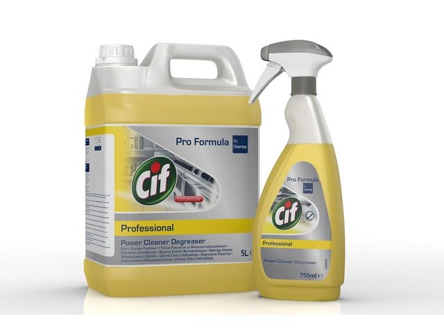 Tuff mot fet smuts! Kraftfullt rengöringsmedel, fettlösare speciellt sammansatt för att klara svårt nedsmutsade ytor i köket som till exempel köksbänkar, köksutrustning, stekkåpor, väggar och golv. Produkten är säker på aluminium. Spraya med brukslösning eller dosera koncentrat i en hink med vatten och rengör med trasa, svamp eller mopp. Skölj noggrant med rent vatten och låt lufttorka eller alternativt torka med en ren, torr trasa eller mopp. Dosering koncentrat till en 750 ml sprayflaska dosera 20 ml Cif Power Cleaner Degreaser och fyll på med vatten. I en hink med 6 liter vatten, dosera 120 ml Cif Power Cleaner Degreaser.