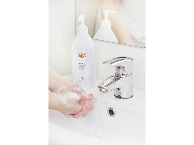 Mild tvål från DAX som är skonsam mot händerna även vid frekvent användning. Händerna utsätts för extra mycket påfrestningar när huden exponeras för kyla och frekvent tvättande med tvål och varmt vatten, så det är viktigt att välja en mild och skonsam tvål. DAX Mildtvål är skonsam för händerna och är en utmärkt tvål för den dagliga handhygienen. Tvålen rengör effektivt och varsamt samtidigt som den återfuktar huden Perfekt alternativ för kommersiella kök, offentliga toaletter eller var som helst där frekvent handtvätt krävs, och den har en praktisk pump för dispensering. Regelbunden handtvätt är det bästa sättet att skydda dig själv och andra mot bakterier och virus