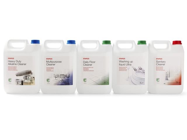 Använd Staples® miljövänliga badrumsrengöring för strimfri rengöring av alla sanitära ytor på toaletter eller i badrum. Detta prisvärda badrumsrengöringsmedel kan användas på en mängd olika våta eller torra ytor. Den koncentrerade blandningen är perfekt för rengöring av golv och väggkakel, toalettstolar i keramik, alla typer av handfat och duschkabiner samt kranar och badrumsinredning. Den kraftfulla vätskan är mycket effektiv på våta ytor, till exempel badrum hemma och offentliga toaletter. Den kan användas på ytor som rostfritt stål, porslin, krom och plast. Den fosfatfria sammansättningen har gett det här rengöringsmedlet en Svanenmärkning. Du tar enkelt bort smutsansamlingar som kalk, rost och tvålrester så att badrummet blir skinande rent. Den milda långvariga parfymeringen ger en trivsam doft.