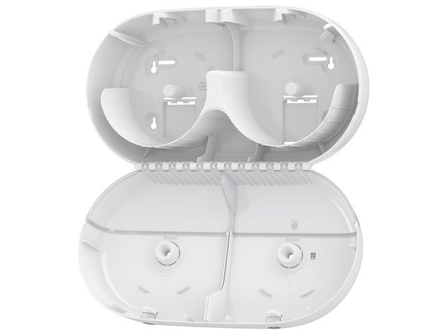 Tork dispenser med plats för två rullar. I välbesökta utrymmen är risken stor för pappersbrist och onödigt avfall. Tork SmartOne Twin Mini Dispenser rymmer två rullar som kan förbrukas helt för minskat avfall och underhåll. Utm... Läs mer