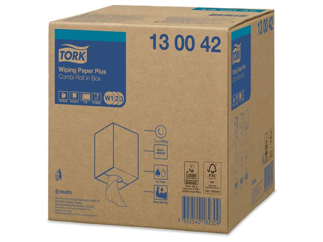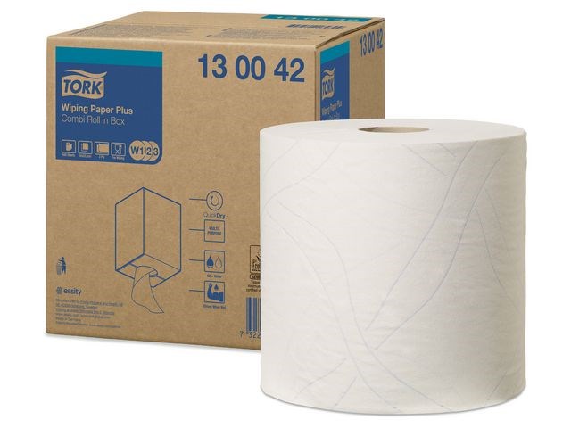 Allroundkvalitet som är lämplig för vätskor och händer. Torka effektivt upp vätskor och torka av händerna med allround Tork Avtorkningspapper Plus. Påfyllningar tar upp värdefull tid, men denna rulle har en hög kapacitet som varar längre under arbetsdagen och förbättrar personalens arbetsflöde. Hög absorptionsförmåga för att kunna torka upp vätskor Detta mångsidiga 2-lagerspapper passar med flera olika dispensrar, vilket kan förbättra produktiviteten ytterligare. Använd tillsammans med Tork Dispenser Rulle i Box eller med Tork Golv- och Väggställ