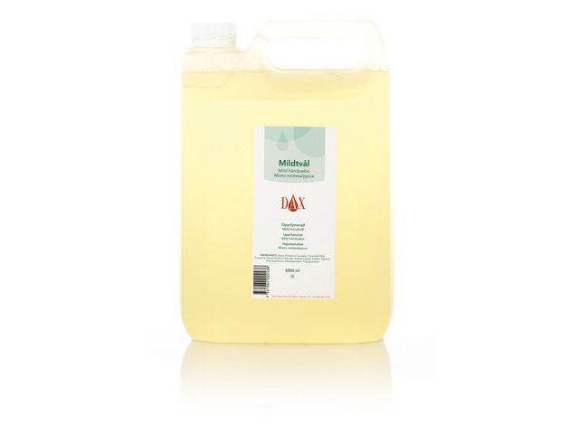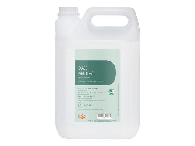 Mild tvål från DAX som är skonsam mot händerna även vid frekvent användning. Händerna utsätts för extra mycket påfrestningar när huden exponeras för kyla och frekvent tvättande med tvål och varmt vatten, så det är viktigt att välja en mild och skonsam tvål. DAX Mildtvål är skonsam för händerna och är en utmärkt tvål för den dagliga handhygienen. Tvålen rengör effektivt och varsamt samtidigt som den återfuktar huden Perfekt alternativ för kommersiella kök, offentliga toaletter eller var som helst där frekvent handtvätt krävs, och den levereras i en 5-liters dunk för att fylla på dispensrar. Regelbunden handtvätt är det bästa sättet att skydda dig själv och andra mot bakterier och virus.