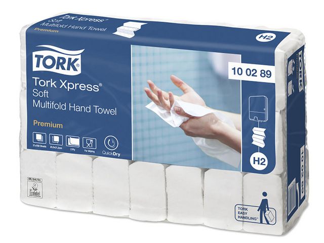 - de är ett behagligt, hygieniskt och miljömedvetet sätt för gästerna att torka händerna. Dessa absorberande multifold handdukar har QuickDry teknologi för skonsam och effektiv torkning, samtidigt som den höga prestandan innebär att gästerna behöver använda färre handdukar, vilket resulterar i mindre avfall och kostnader. Använd dem tillsammans med en kompatibel Tork Xpress dispenser som passar prydligt i begränsade utrymmen. Kompatibel med Tork H2 dispensrar.