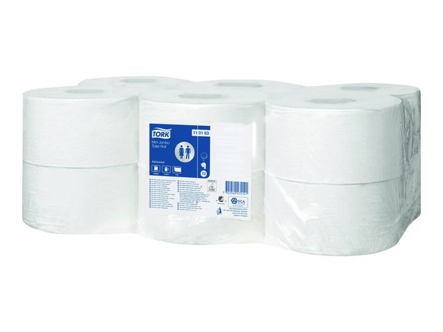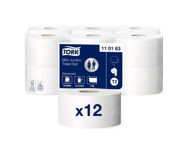 Tork Universal T2 Mini jumborulle har en mjuk känsla för maximal komfort. Tork Universal T2 Mini jumborulle med toalettpapper är miljömärkt med EU Ecolabel, ett utmärkt val för miljön. Det här toalettpapperet är mjukt och särsk... Läs mer