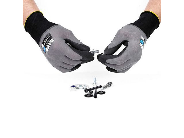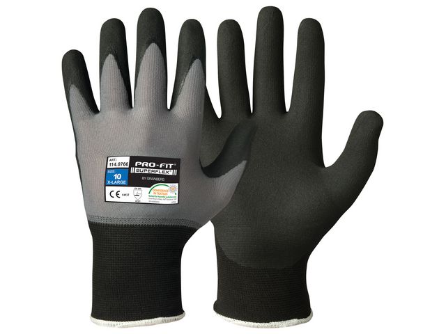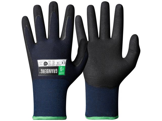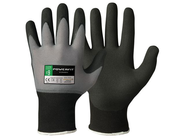 Montagehandskar med mikrokapillär nitrilskumbeläggning. Lämpliga för arbete inom t.ex. montering, transport, lager och underhåll. Montagehandskar Powerfit by Granberg med extra tunn nylonväv (18 gauge) och sandig nitrilskumsbeläggning. Med ett enastående torr-, våt- och oljegrepp och en utmärkt slitstyrka, samtidigt som du får den optimala fingerkänslan. Sanitized-behandlade för att förhindra bakterietillväxt och ge en fräsch känsla samt Oeko-Tex certifierade. Lämpliga för lätt till medeltungt arbete inom montering, transport, underhåll, industri, anläggning och lager.