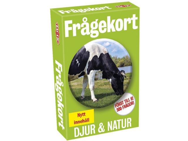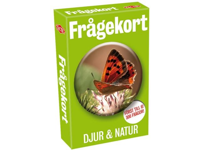 Kort med frågor som är perfekt att ta med på resan då asken tar lite plats. Frågesport om djur och natur, Innehåller 300 frågor och svar samt regler. Svarar du rätt får du behålla kortet, först till 6 kort vinner.